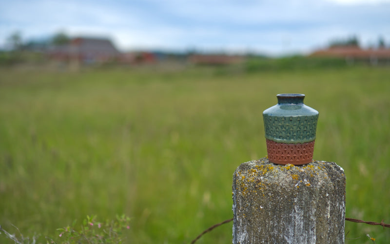 Living Large Small is the collaborative effort of two artists and partners Craig Britton & Brittany Whitaker. All of our pieces are wheel thrown & hand decorated using a variety of techniques. Craig throws all of our forms & Britt is responsible for glazing - this tag team approach allows each of us to explore the parts of the process that we love. That said, some pieces are entirely solo creations!