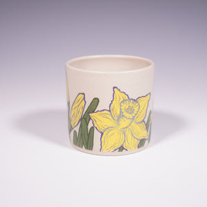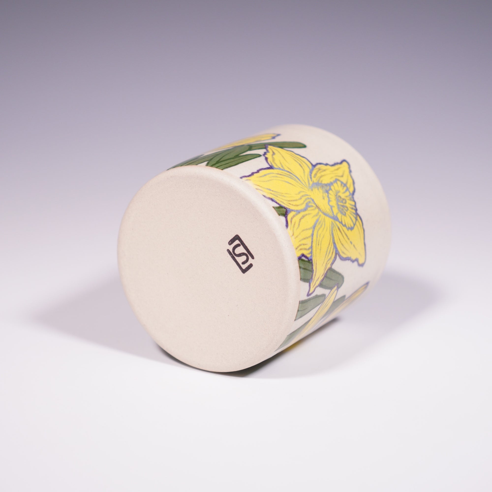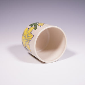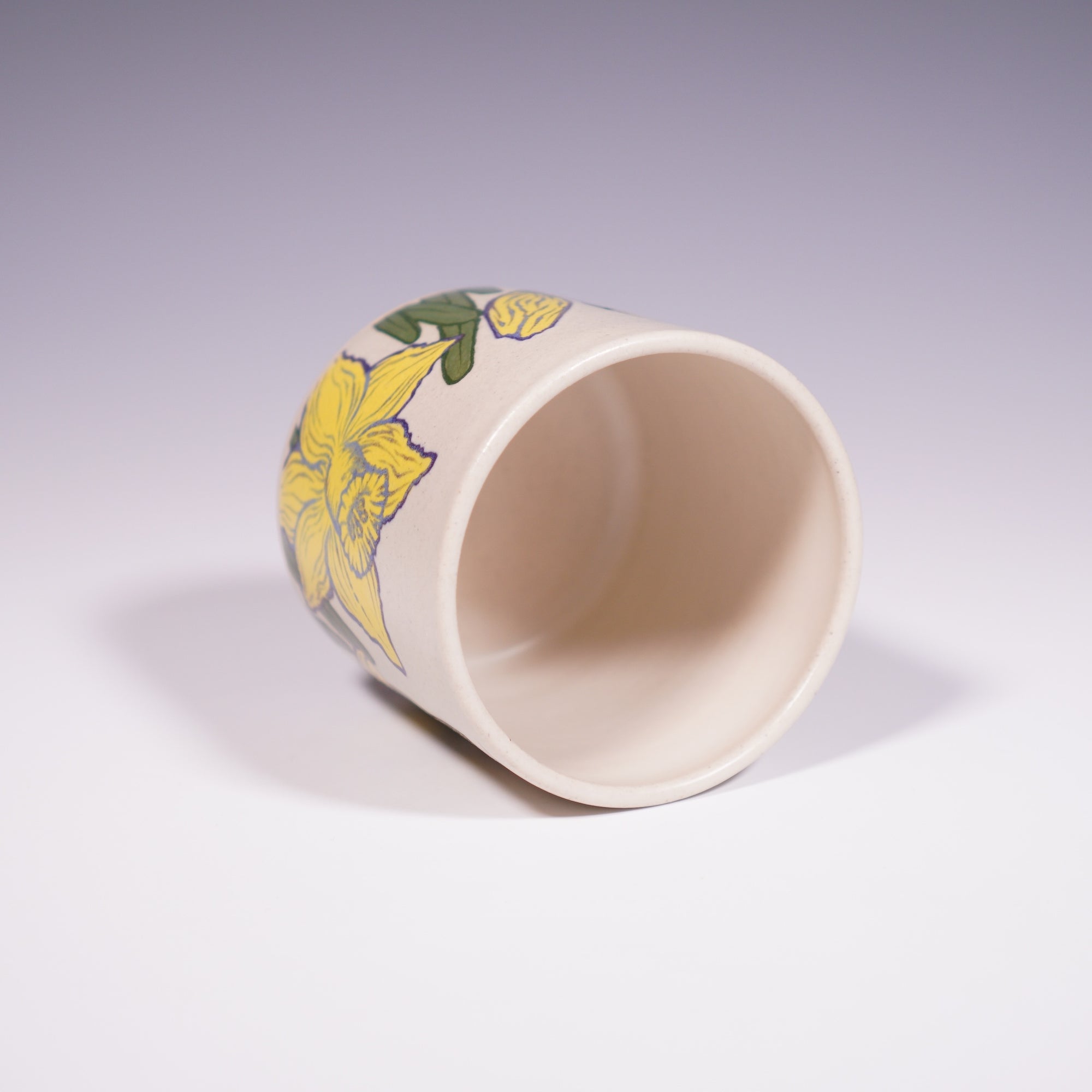This one of a kind stoneware tumbler was wheel thrown & hand painted with underglaze motifs. Made with beautiful white clay.