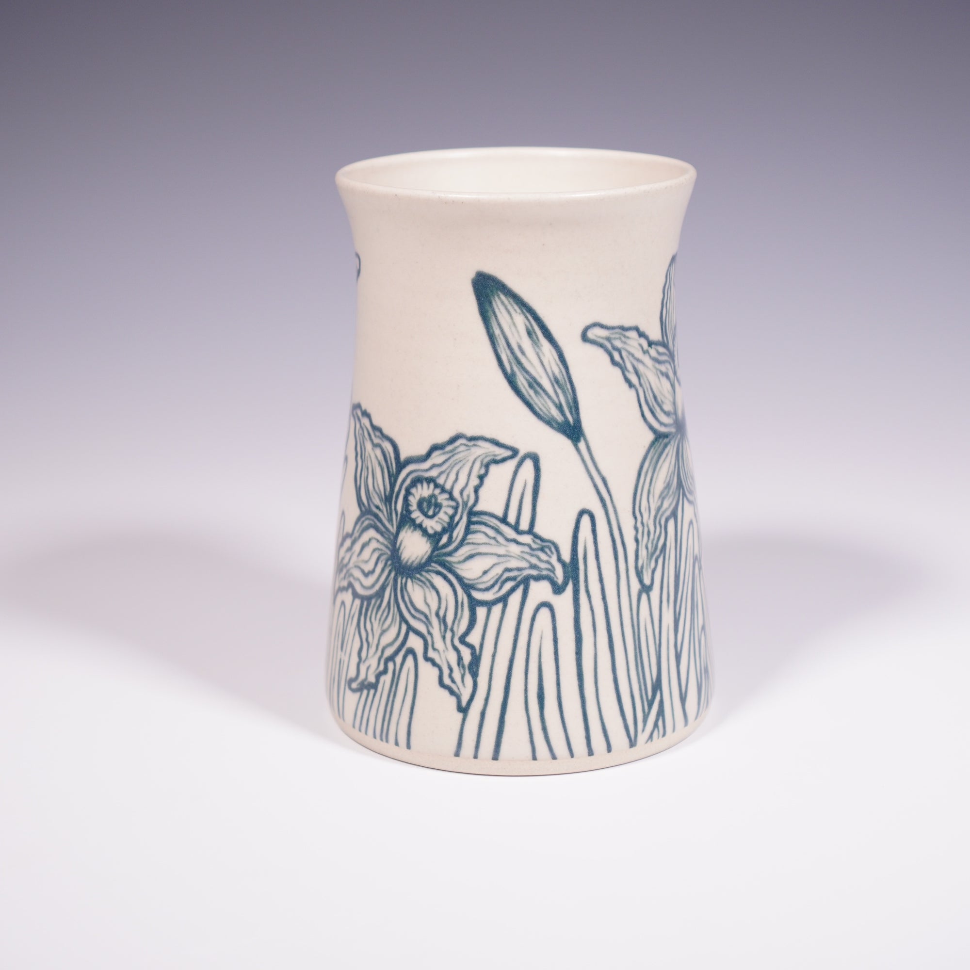 Teal Daffodils Vase (Medium)
