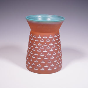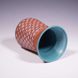 Let the mesmerizing patterns of our Textured Vases dazzle your favorite spaces & tickle your tactile fancy. A fully functional flower vase and a stand alone piece of art. Wheel thrown with a beautiful red clay & finished with a variety of glazes.