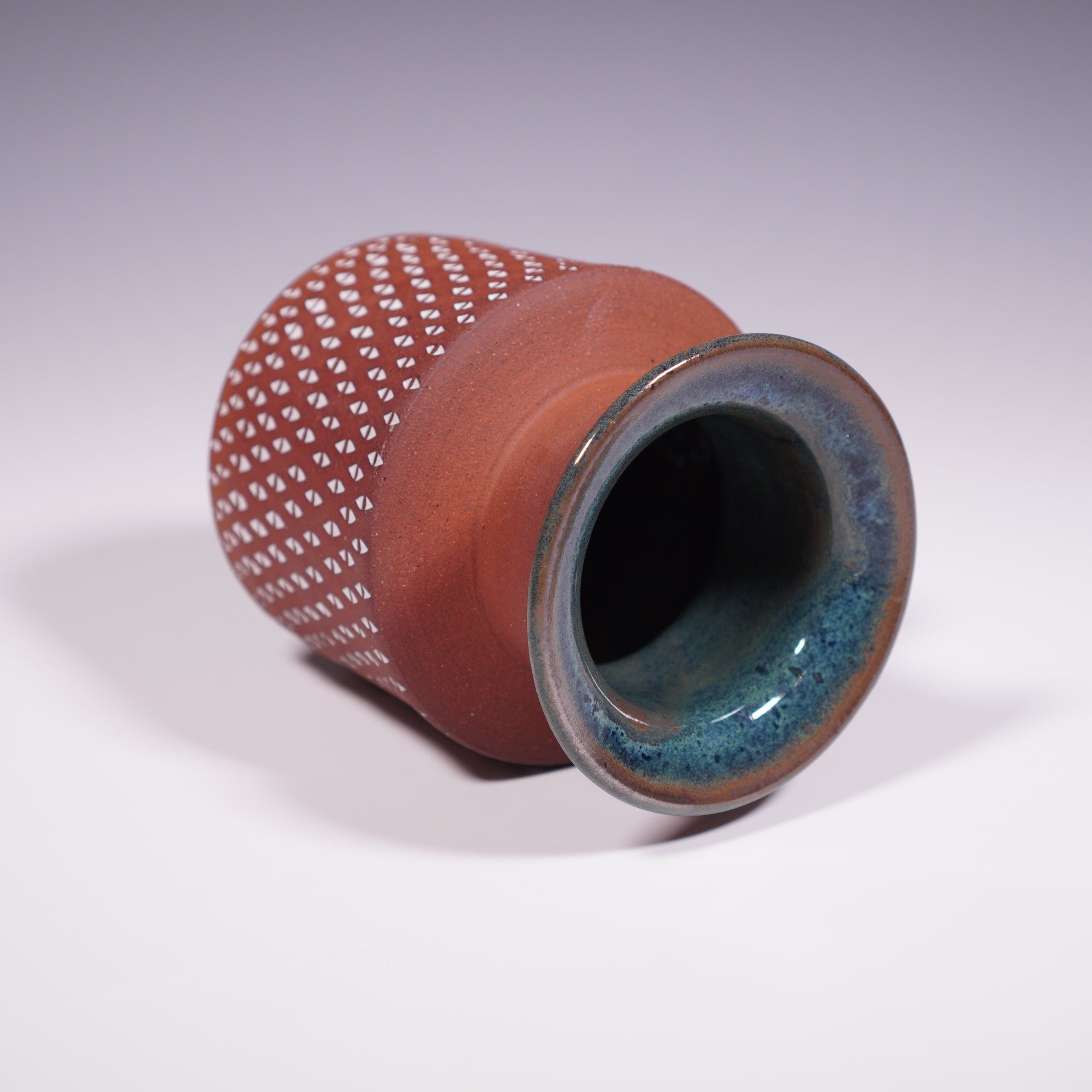 Let the mesmerizing patterns of our Textured Vases dazzle your favorite spaces & tickle your tactile fancy. A fully functional flower vase and a stand alone piece of art. Wheel thrown with a beautiful red clay & finished with a variety of glazes.
